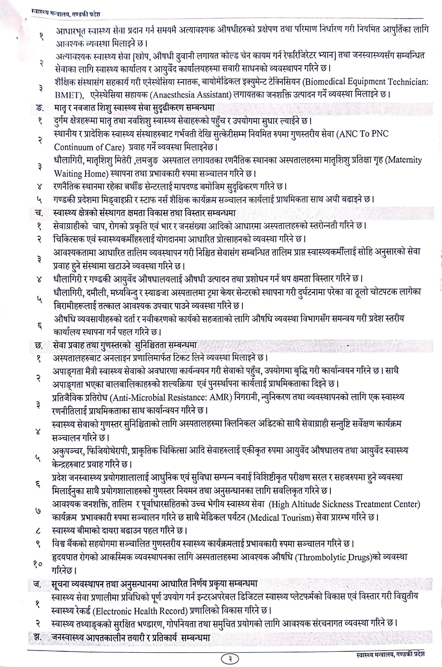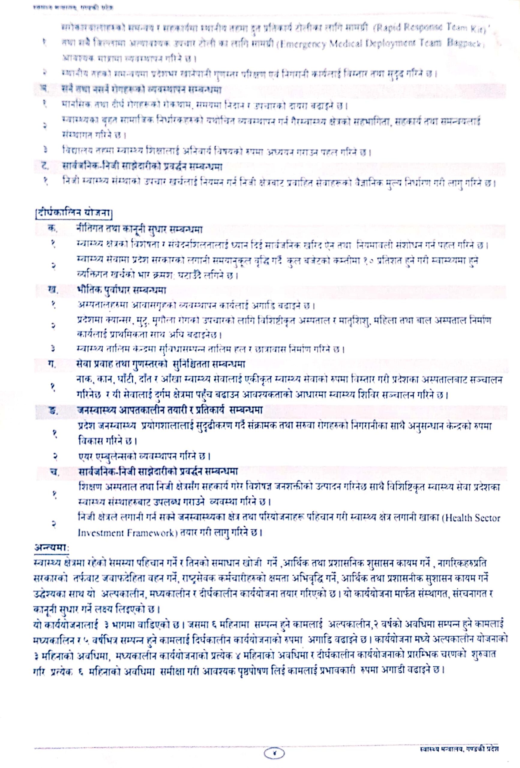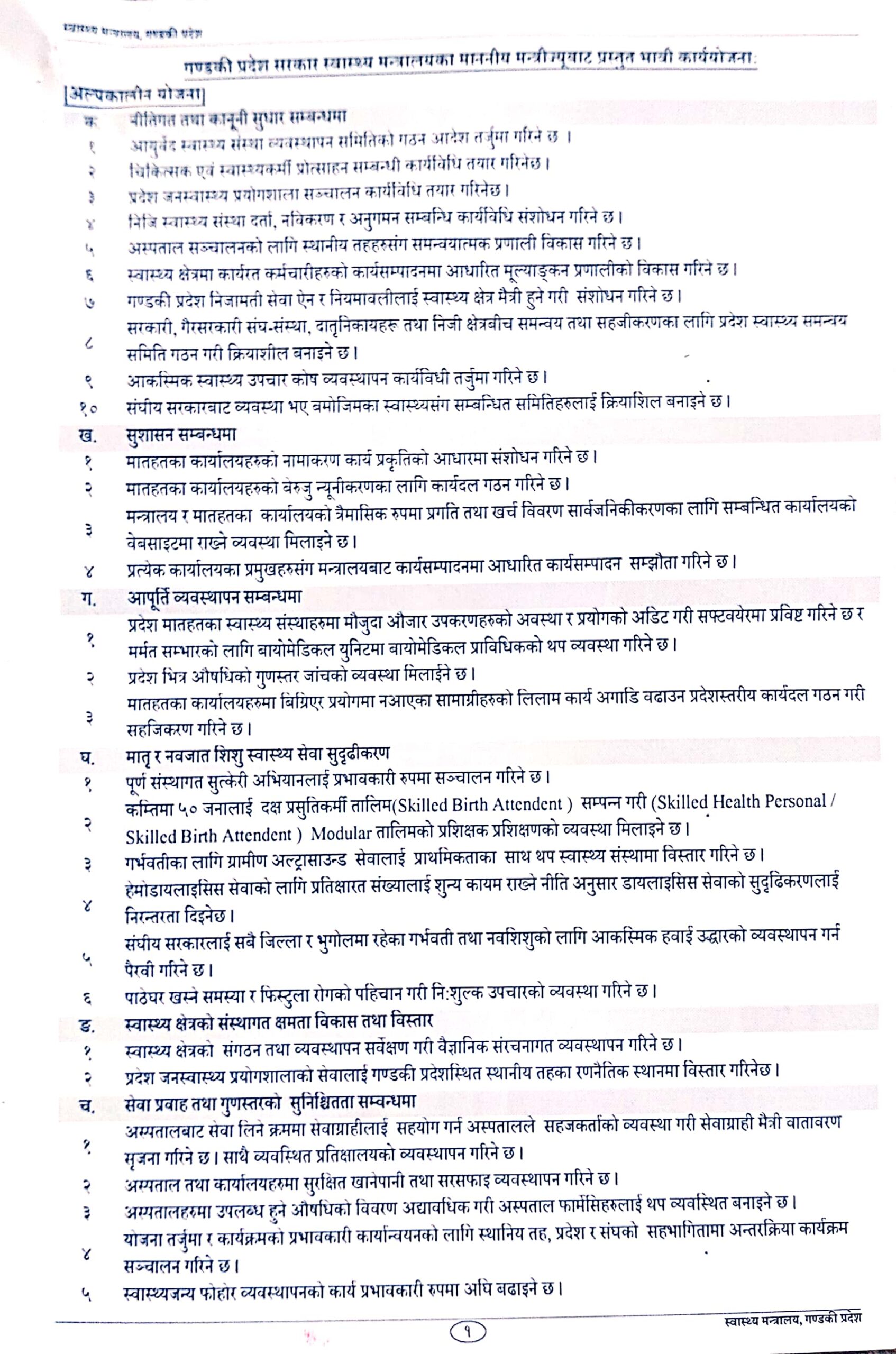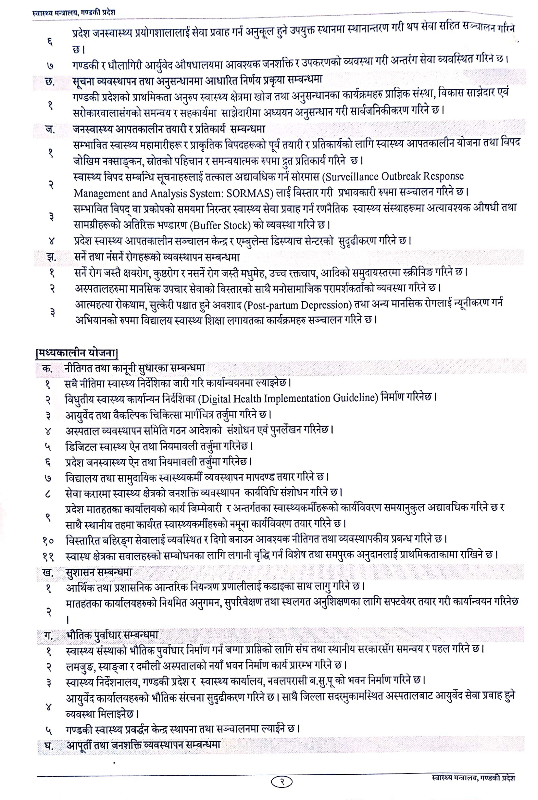 गण्डकी प्रदेशका स्वास्थ्य मन्त्री कृष्णप्रसाद पाठकले सार्वजनिक गरेको अल्पकालीन, मध्यकालीन र दीर्घकालीन योजनाको सूची