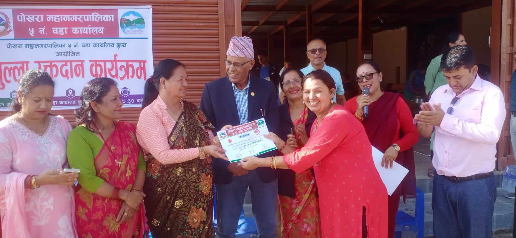 पोखरा । पोखरा महानगरपालिका वडा नम्बर ५ ले आज आयोजना गरेको रक्तदान कार्यक्रममा ४२ युनिट रगत संकलन भएको छ ।