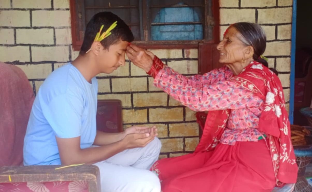 घरमा मान्यजनको हातबाट टीका लगाएसँगै सर्वसाधारण आफन्तकहाँ जान्छन् । टाढा रहेका बन्धु, मावली र ससुरालीलगायत नाताकहाँ टीका लगाउन जाने चलन छ । यो क्रम पूर्णिमासम्म रहन्छ । आश्विन शुक्ल पूर्णिमा अर्थात् कोजाग्रत पूर्णिमाका दिन जमरा विसर्जन गरेपछि टीका लगाउने क्रमसँगै दसैं पर्व सकिन्छ ।