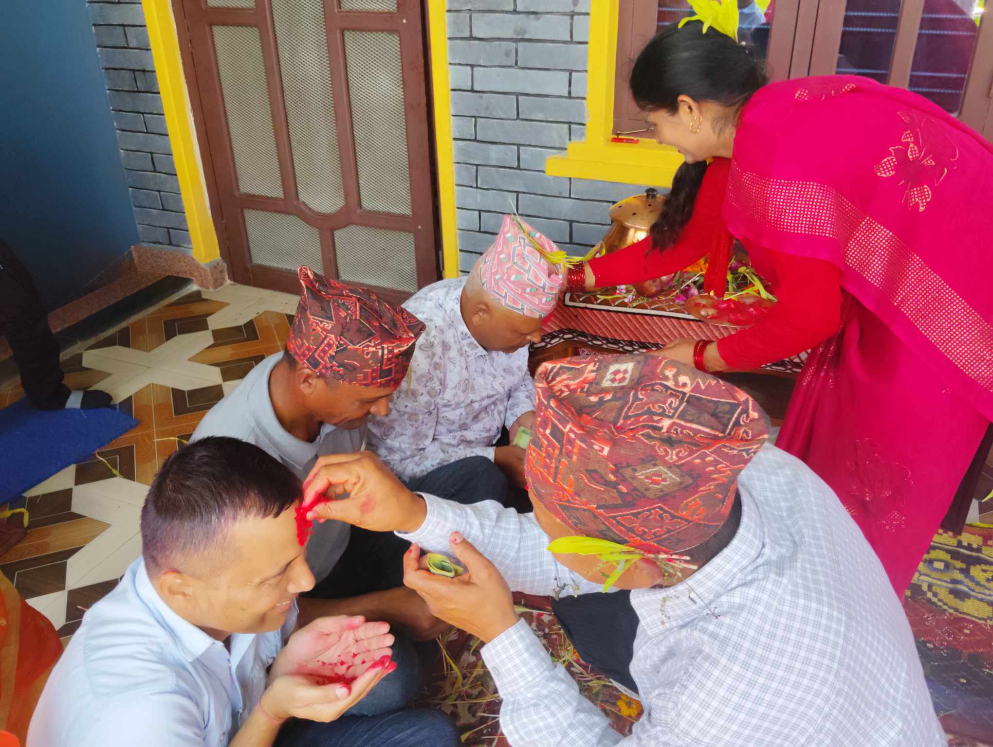 पोखरा । विजया दशमीको टीकाको आज तेस्रे दिन पनि नवदुर्गाको प्रसाद स्वरूप टीका थाप्न र आशीर्वाद लिन मान्यजनका घरमा जाने क्रम निरन्तर छ ।