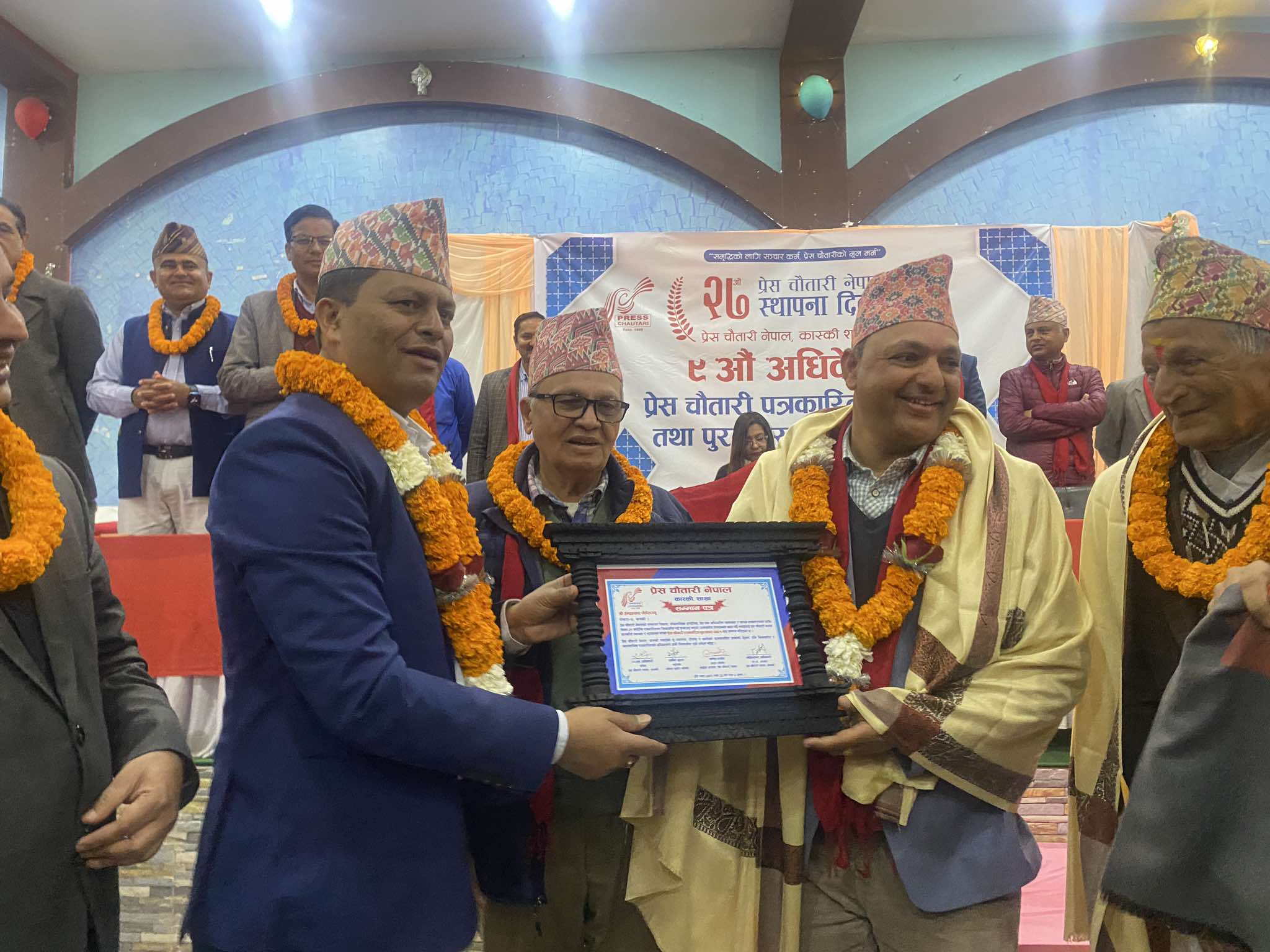 उनीहरूलाई प्रेस चौतारीका अध्यक्ष गणेश बस्नेत, उपाध्यक्ष गणेश पाण्डे र राजेश राई, नेकपा (एमाले) कास्कीका नेतासहितले सम्मान–पत्र प्रदान गरेका थिए । प्रेस चौतारी नेपालका पूर्व केन्द्रीय उपाध्यक्ष तथा सल्लाहकार शान्ति गुरूङ संयोजक रहेको प्रतिभा छनौट समितिले गुरूङलाई सम्मान र पौडेललाई पुरस्कृत गर्न सिफारिस गरेको थियो ।