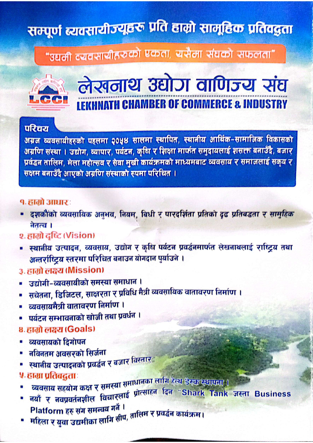 पोखरा । पोखरा महानगरपालिका भित्रपर्ने (साविक लेखनाथ नगरपालिका) का उद्योगी व्यवसायीलाई चुनाव लागेको छ । लेखनाथ उद्योग वाणिज्य संघको १५ औं अधिवेशनले नयाँ नेतृत्व चयन गर्ने भएपछि उद्योगी व्यवसायीलाई चुनाव लागेको हो ।