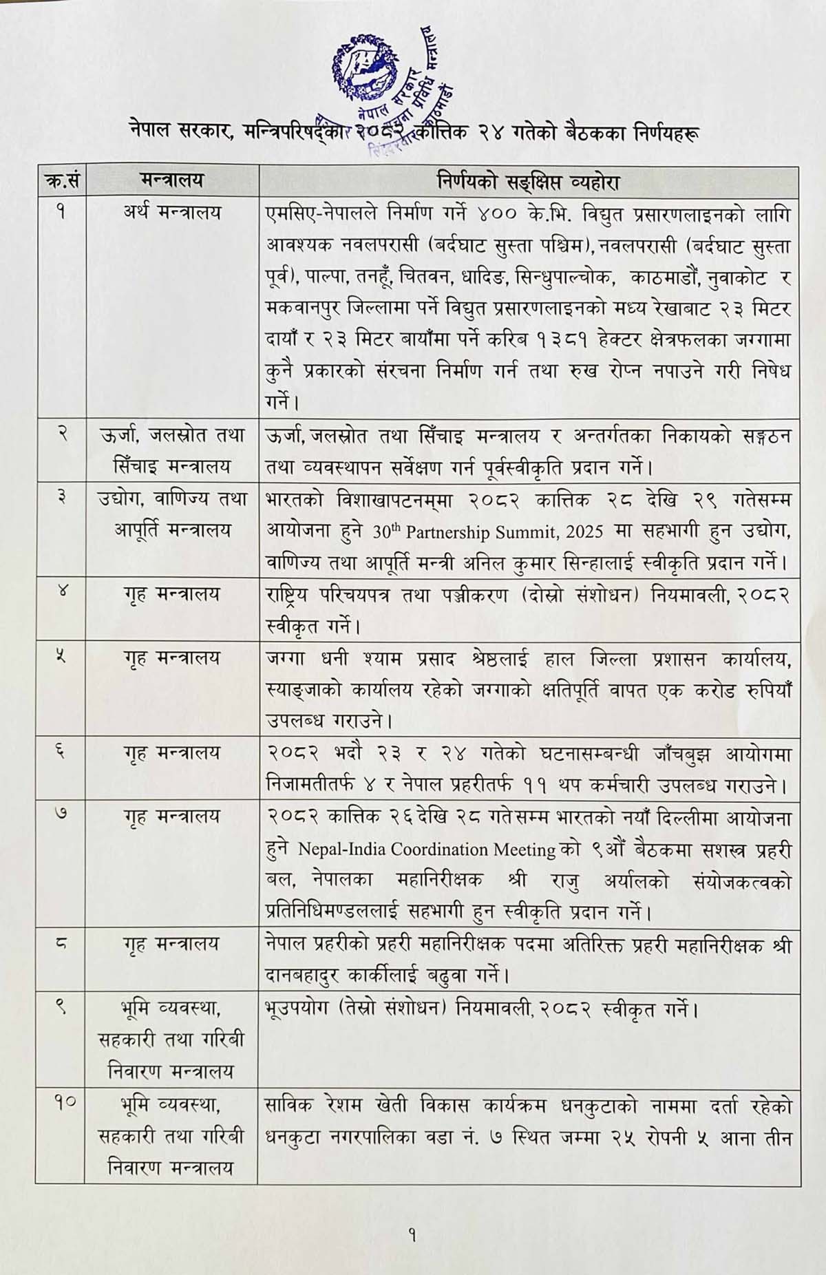 हेर्नुहाेस मन्त्री परिषद्का निर्णय ।