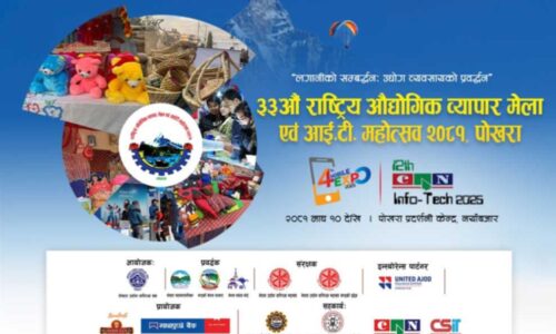 पोखरा, १० माघ । पोखरामा ३३ औं संस्करणको राष्ट्रिय औद्योगिक व्यापार मेला एवं आइटी महोत्सव २०८१,१२ औं क्यान इन्फोटेक २०२५ तथा चौथो मोवाइल एक्सपो २०२५ को शुभारम्भ भएको छ । पोखरा उद्योग वाणिज्य संघ आयोजक रहेको मेलाको गण्डकीका मुख्यमन्त्री सुरेन्द्रराज पाण्डेले उद्घाटन गरे । मुख्यमन्त्री पाण्डेले हातमा रहेको स्वीच दबाएपछि मञ्चको अगाडि रहेको बत्ति स्वतः...